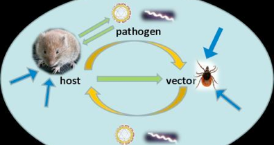 Ticks may act as diseases vectors - they may transmit specific disease agents from one host to another. In Europe is the most important arthropod vector the common tick Ixodes ricinus. This tick tranmits, among other, two important human diseases - Lyme borreliosis and tick-borne encephalitis. These pathogens circulate under natural conditions in so called natural foci of infection, where the pathogens are continuously transmitted among ticks and different natural (vertebrate) hosts. Human become infected accidentally when entering the focus.